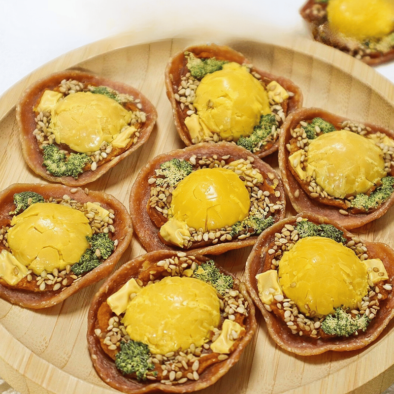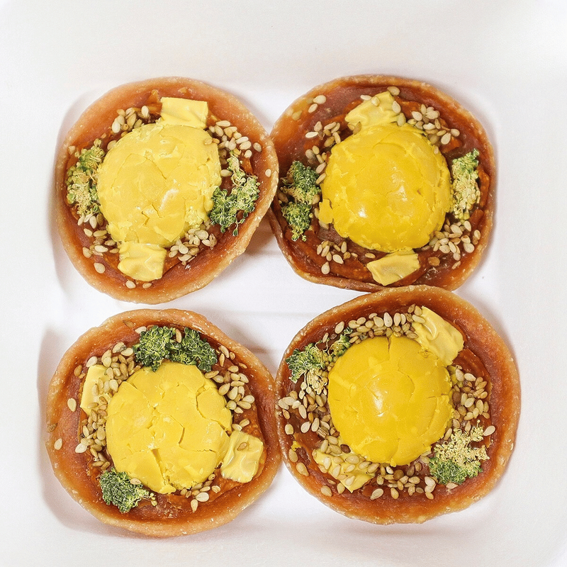 made of chicken breast 🐔 egg yolk 🥚 sweet potato 🍠 cheese 🧀 broccoli 🥦